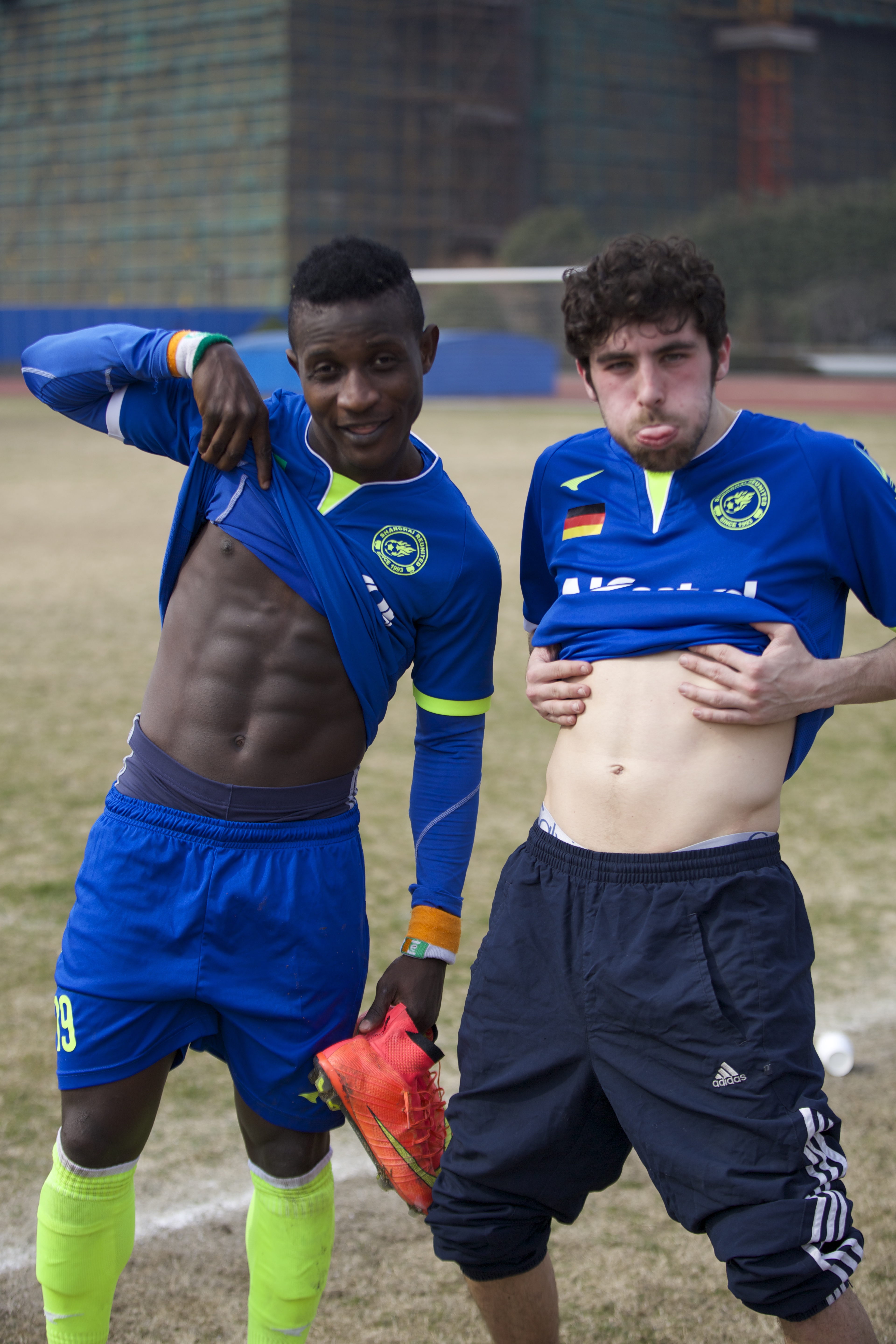 We started with Cody in goal and our usual defensive line Essien, Seb, Will, and Thomas. Alex and David started on the wings, Karsten and Xiao Liu in defensive midfield, Tobi upfront. Steve had to serve his country (meaning one of his first absences in years), but Lee Rowbotham was there to fill the gap. Furthermore we had Lucas and Robert starting as substitutes. We knew very well that Japan are a strong team and certainly better than what our previous results against them might lead to believe. Yet our defense was solid and we stopped most of their attacks already in midfield. After a brilliant combination over a few players it was Lee then who managed to get the ball inside Japan’s box and after the keeper blocked his first shot, the ball bounced back to him and Lee lobbed it over the keeper into a 1-0 lead. We kept playing our game very focused and so it was not long until Alex ran hallway down the pitch on the right side, dribbled a few Japan defenders and passed the ball to Lucas. Lucas took the ball and converted to the second goal of the day. Our tactics worked well and while we created a few more chances, Japan got only through corners and free kicks close to our box.