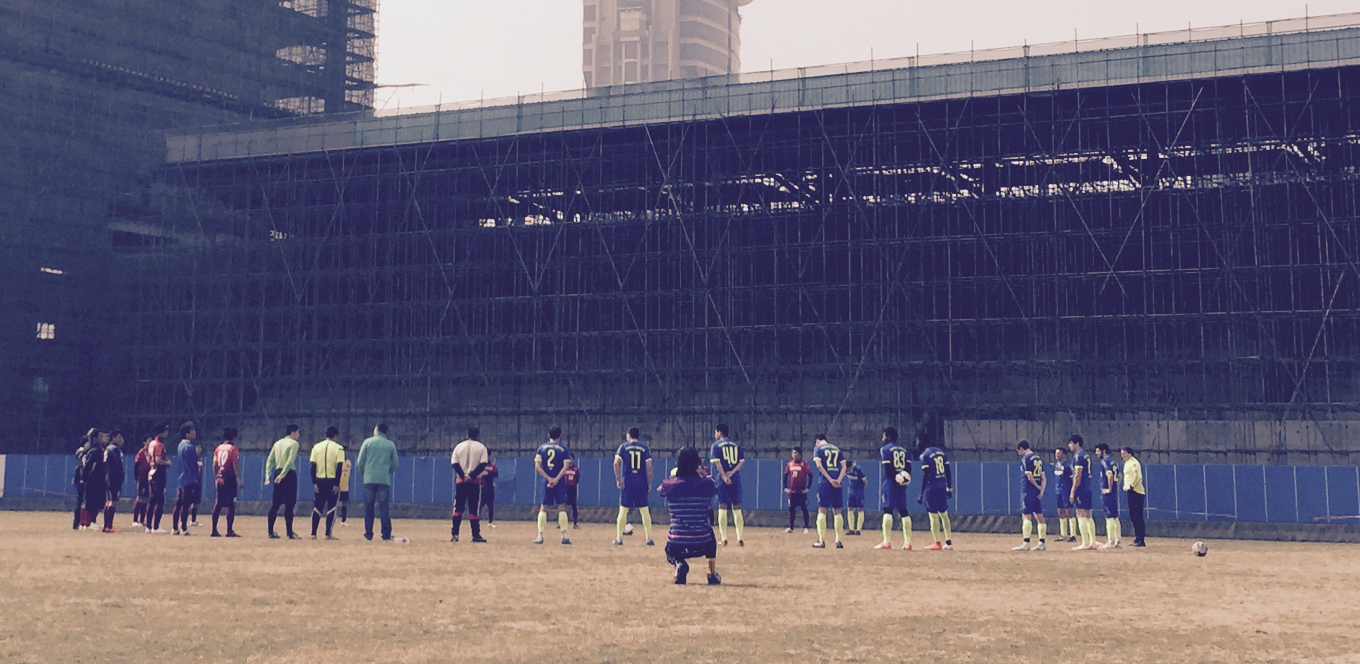 The last weekend before the big holiday was reserved for the Hebiguchi cup semi-final. Our opponent that day was Japan FC. The game started with a minute of silence (pictured below) for Mr. Hebiguchi of Japan FC, who sadly passed away on the fields of Tianma many years ago and is still remembered by all SIFL teams and players by playing the annual Hebiguchi cup.