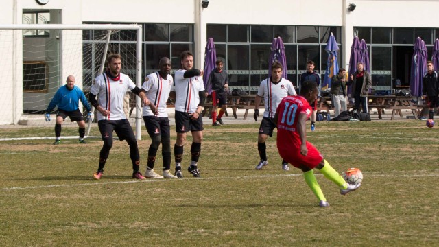 In the first half we struggled to create any clear chances from open play although a Karsten free kick struck the bar. The Shooters took the lead when a free-kick into the box led to a short scramble before their winger poked home from ten yards.
